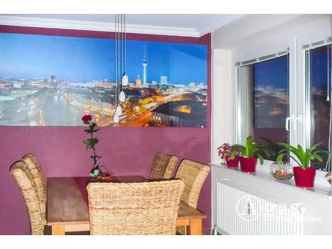LagebeschreibungDiese attraktive Etagenwohnung befindet sich am südlichen Rand von Berlin, in einer ruhigen und zugleich gut angebundenen Wohngegend, nur 500 Meter von der Landesgrenze zu Brandenburg entfernt. Die Wohnung bietet eine hervorragende Anbindung an das städtische und regionale Verkehrsnetz, mit einer Distanz von etwa 33 min mit dem PKW zum Stadtzentrum und einer Erreichbarkeit der nächsten Autobahnauffahrt in unter 10 min. Die Wohngegend ist von zahlreichen Grünanlagen umgeben, die zu Spaziergängen und Freizeitaktivitäten einladen. Zahlreiche Spielplätze und Freizeiteinrichtungen bieten Raum für Erholung und Aktivitäten aller Generationen....