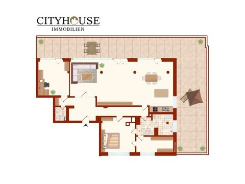 Die 90 m² große Terrasse in einem 90° Grad Winkel ermöglicht Ihnen einen nahezu Rundumblick über ganz Köln.