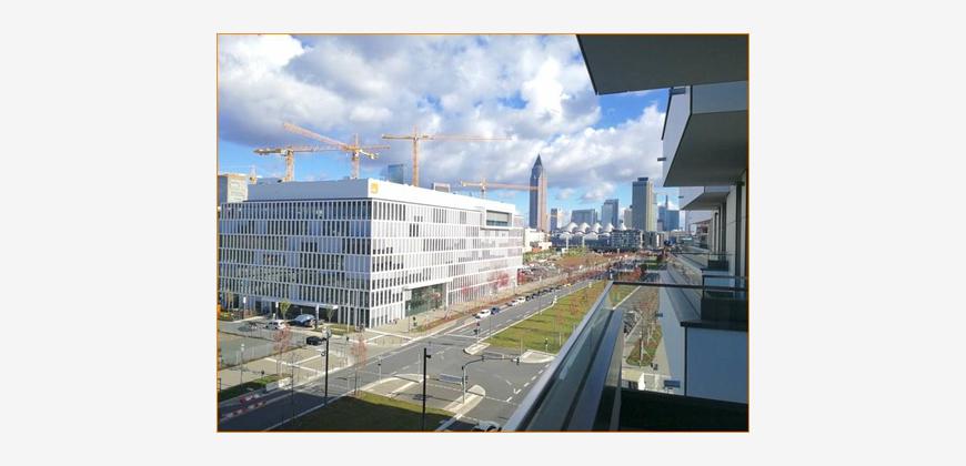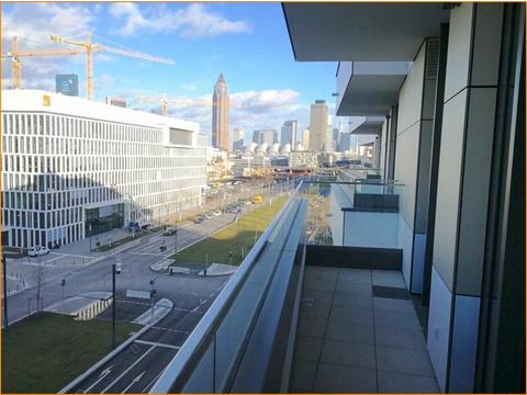 - Balkonaustritt mit Skylineblick sowie in den Europagarten, bis in den Taunus