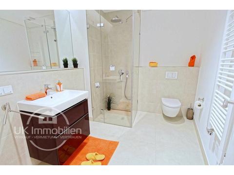 - Duschbad mit ebenerdiger gefliester Dusche, Echtglasduschkabine und dimmbaren Ambi-Lights