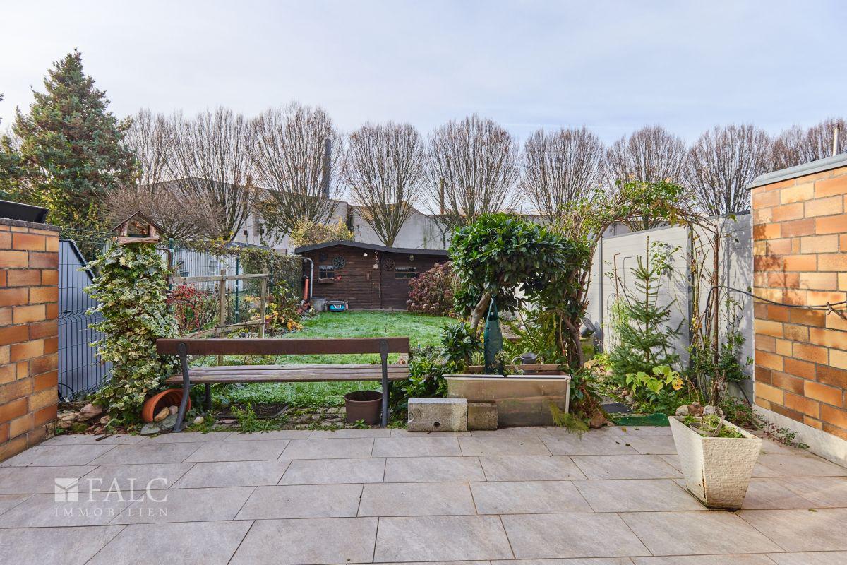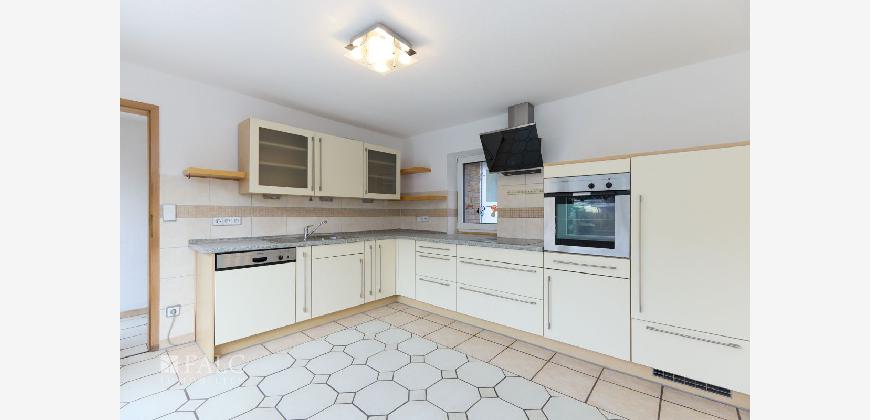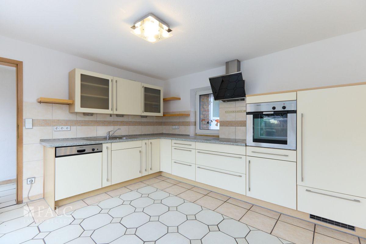 Die gartenseitige, voll ausgestattete Küche ist funktional gestaltet und bietet direkten Zugang zum eigenen Garten. Er lädt zum Entspannen, Verweilen und Spielen oder für sommerliche Abende im Freien ein.