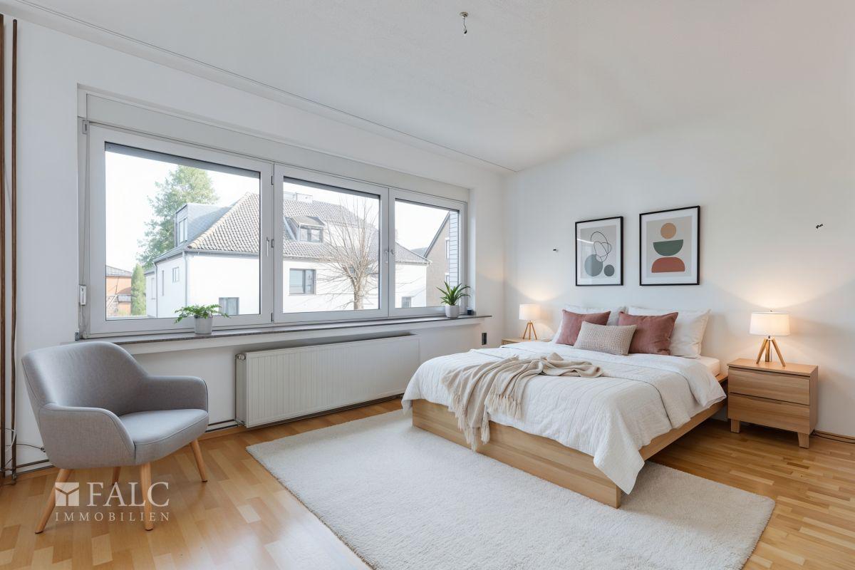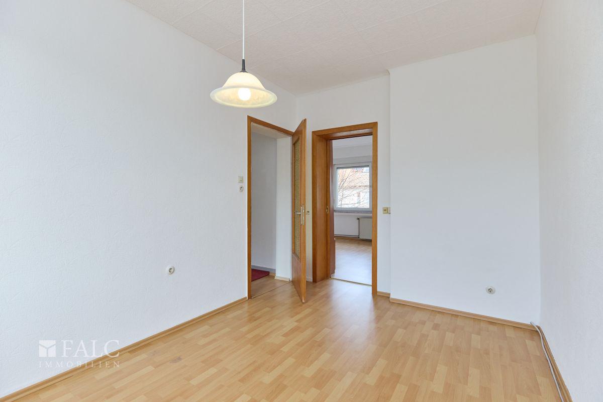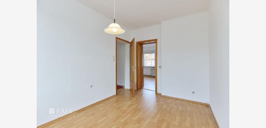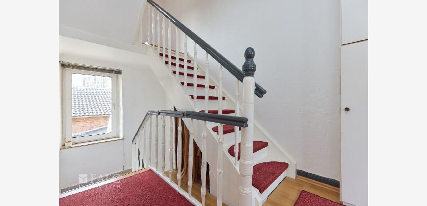 Über die Treppe erreichen Sie das Obergeschoss mit zwei gut geschnittenen Schlafzimmern. Ob als Elternschlafzimmer, Kinderzimmer oder Arbeitszimmer – hier stehen flexible Nutzungsmöglichkeiten zur Verfügung.