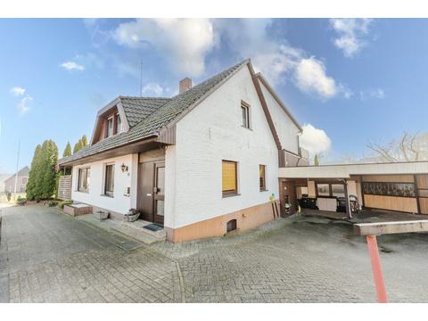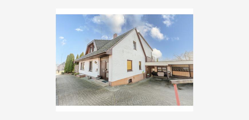 Dieses vielseitige Einfamilienhaus befindet sich in sehr zentraler Lage von Uelsen und bietet gleichzeitig einen außergewöhnlichen Blick ins Grüne: Nach hinten grenzen Weideland und Ackerflächen an, wodurch sich von der Terrasse und insbesondere von der Dachterrasse ein freier Ausblick ergibt, eine Kombination, die selten zu finden ist.