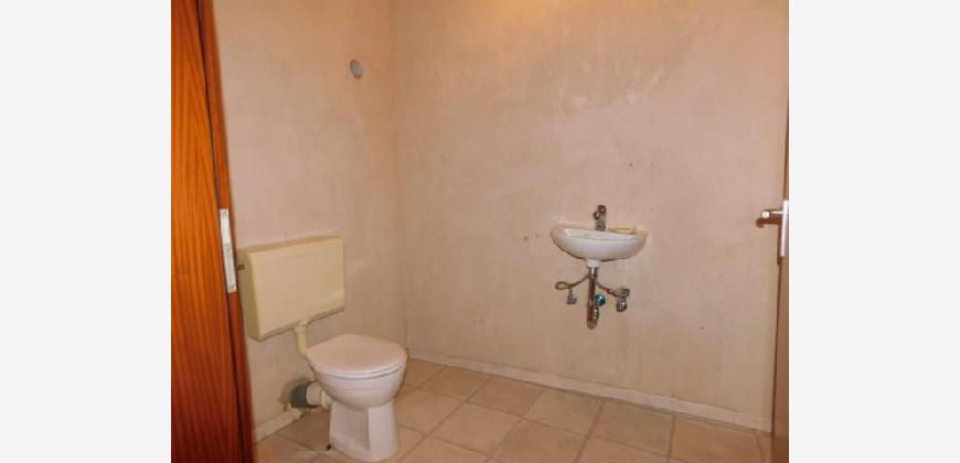 Vom Eingangsbereich mit Diele geht es rechter Hand ein paar Stufen hinab zu einer üppig dimensionierten Wohnküche und zum tageslichthellen Badezimmer. Daneben liegen 2 Vorrats/ Lagerräume.