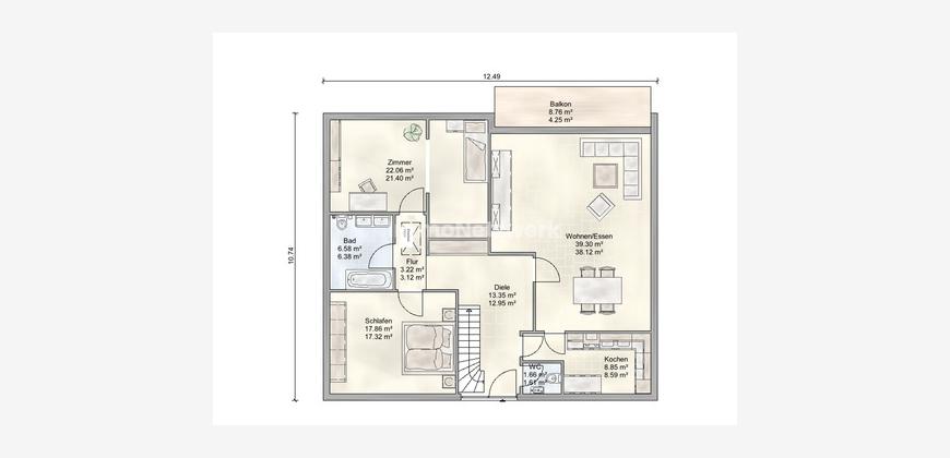 Alle Angaben sind ohne Gewähr und basieren ausschließlich auf Informationen, die uns von unserem Auftraggeber zur Verfügung gestellt wurden. Wir übernehmen keine Gewähr für die Vollständigkeit, Richtigkeit und Aktualität dieser Angaben. Die Grundrisse sind nicht maßstabsgetreu und dienen lediglich der Veranschaulichung. Das vorliegende Exposé ist als unverbindliche Information zu verstehen und kann nicht als Rechtsgrundlage herangezogen werden. Rechtskräftig ist ausschließlich der notariell abgeschlossene Kaufvertrag.