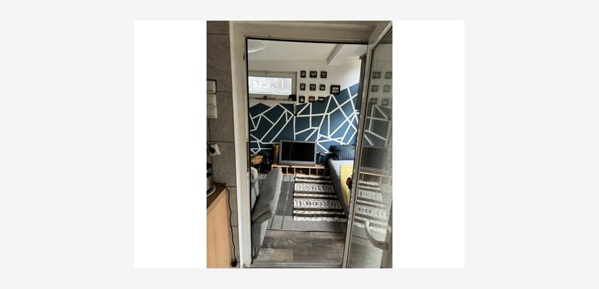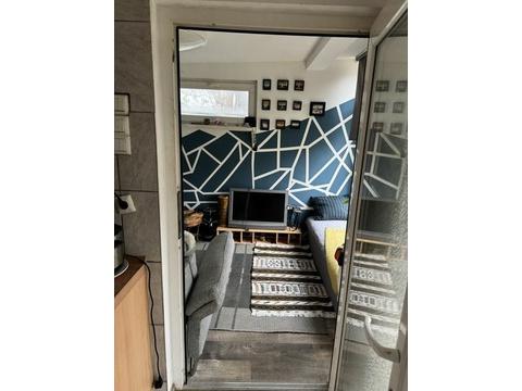 Das kleine Gartenhaus, verfügt über ein Schlafzimmer, einer Wohnküche und einem Wc und dusch mit Warm- sowie kaltem Wasser.