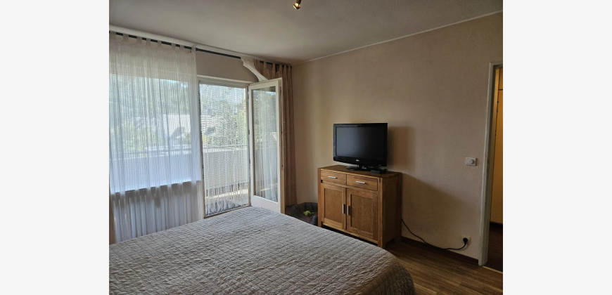 Im Schlafzimmer finden Bett und Schrank ohne Probleme Platz, von hier aus haben Sie ebenfalls die Möglichkeit auf den Balkon zu gelangen, der die gesamte Wohnung umläuft.