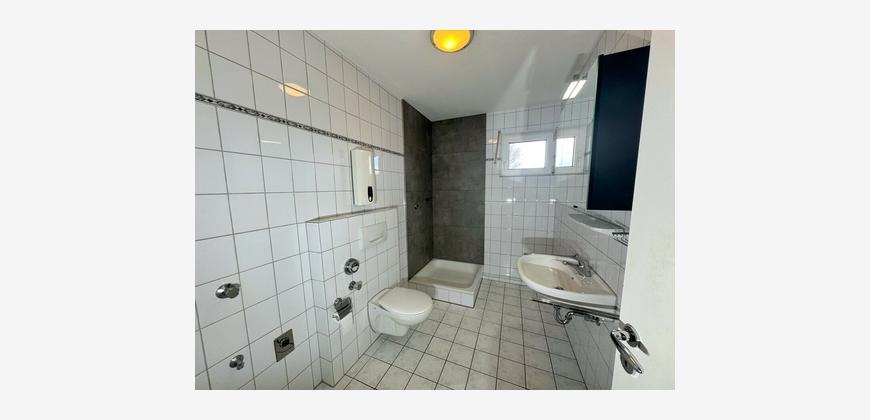 Der Wohnbereich ist hell gestaltet und ermöglicht den Zugang zum teilüberdachten Balkon. Von hier ergibt sich ein wunderbarer Ausblick. Zwei weitere Zimmer, ein Badezimmer mit Dusche, eine Küche und ein Hauswirtschaftsraum gehören ebenfalls zur Wohnung. Die Waschmaschine kann im Badezimmer untergebracht werden, eine neue Duschkabine, sowie eine neue Armatur werden hier noch installiert.