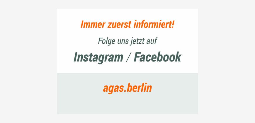 Folge agas.berlin auf Instagram oder Facebook und sei immer zuerst informiert!