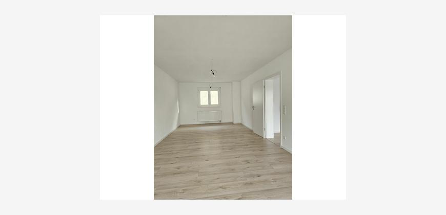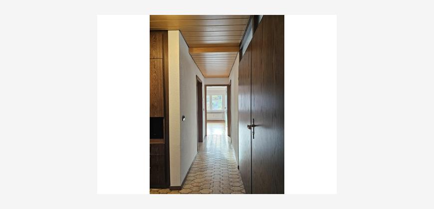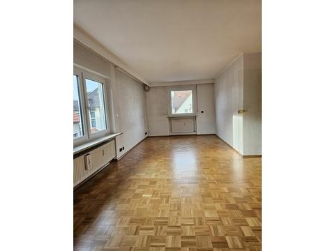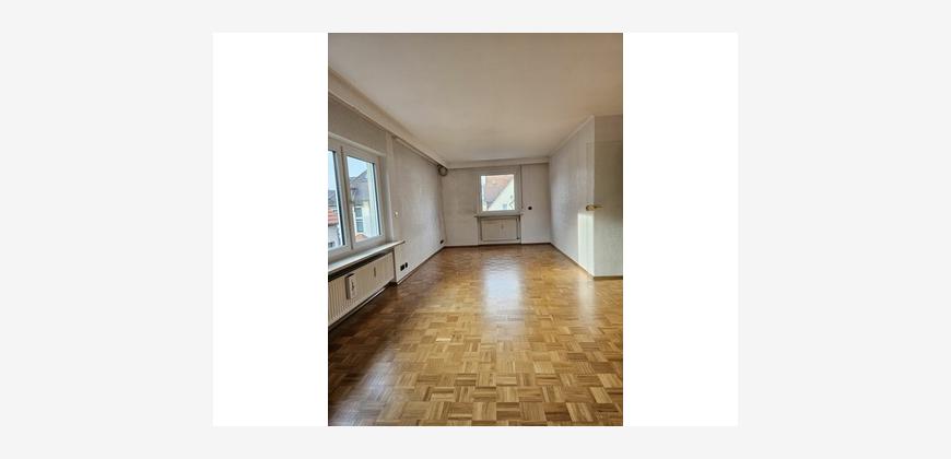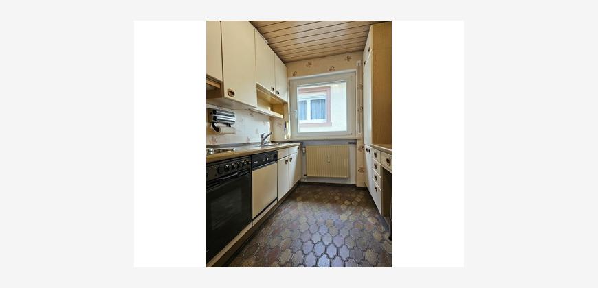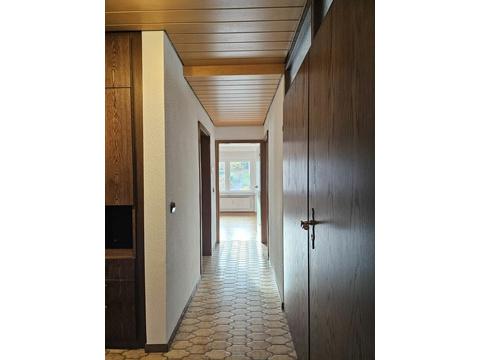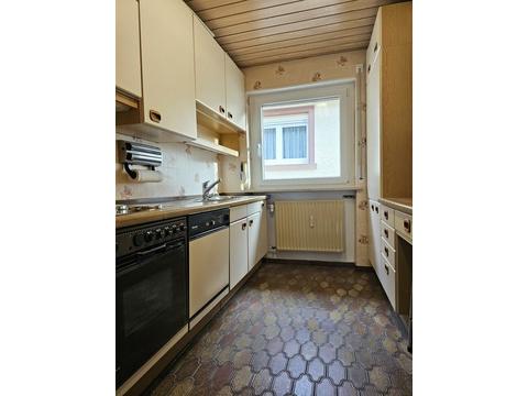 Die Wohnung ist aufgeteilt in ein großes Wohnzimmer mit Essbereich, einer Küche mit Einbauküche und Geräten, 1 Schlafzimmer, 2 Kinderzimmer, 1 nicht modernisiertes Bad mit Dusche und Badewanne sowie einem separaten Gäste-WC.