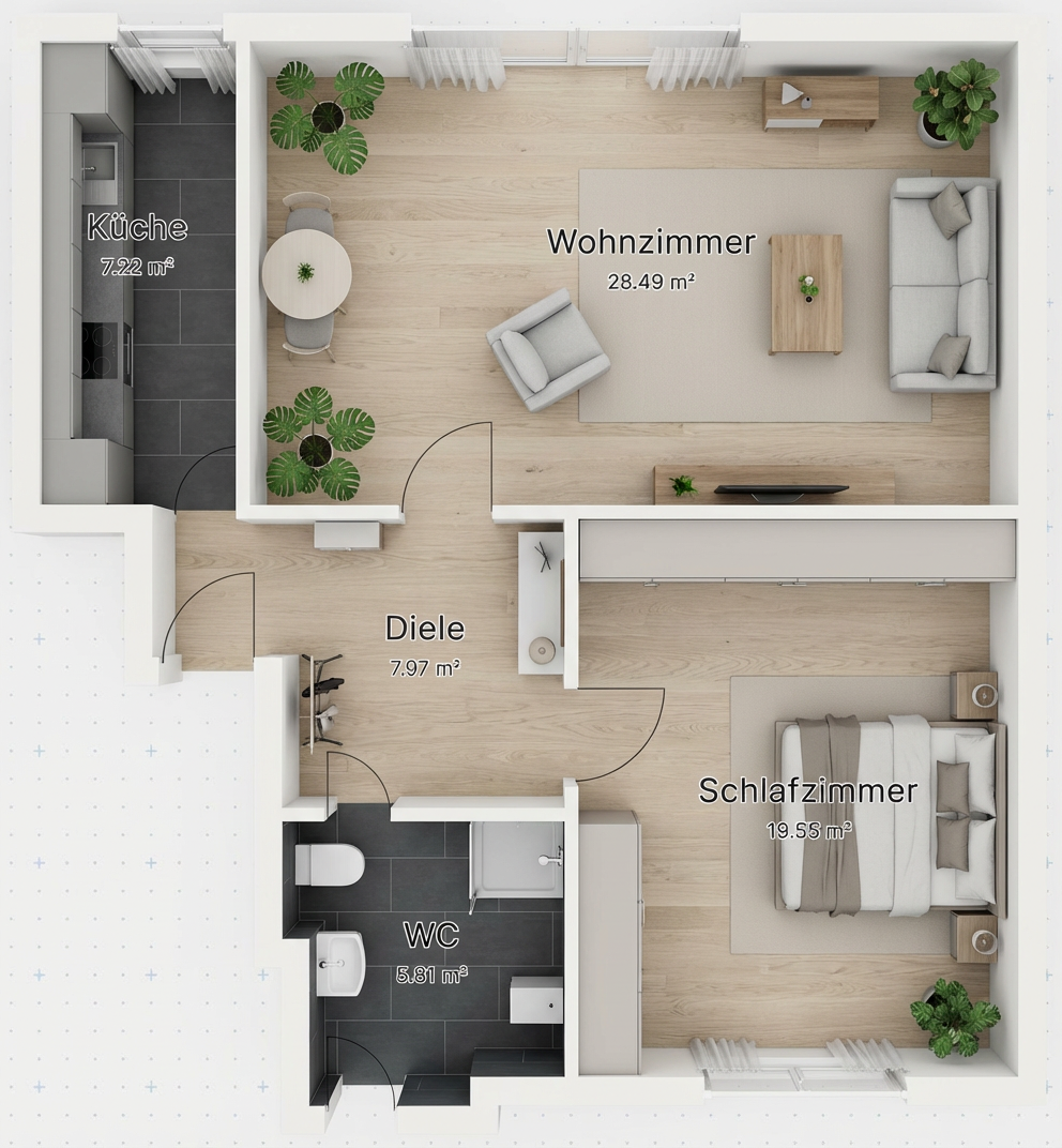 Einige Fotos wurden digital bearbeitet bzw. virtuell möbliert. Die dargestellte Einrichtung dient lediglich als Einrichtungsbeispiel. Makleranfragen unerwünscht! Nach § 7 UWG sind unaufgeforderte Kontaktaufnahmen durch Makler ohne ausdrückliche Einwilligung des Empfängers verboten!