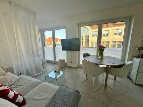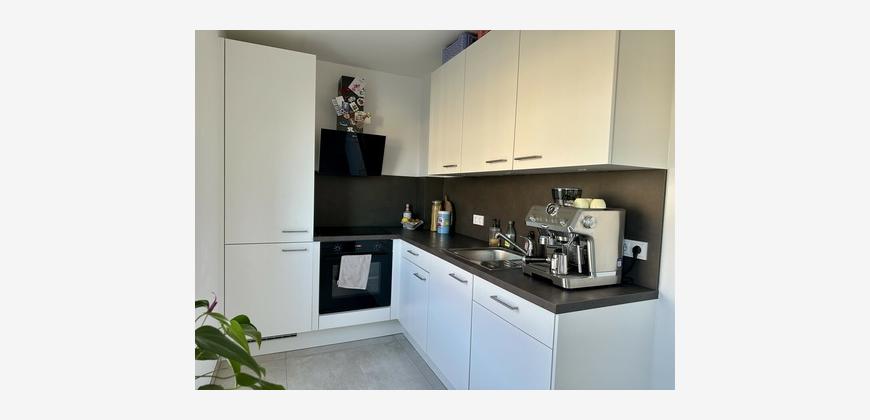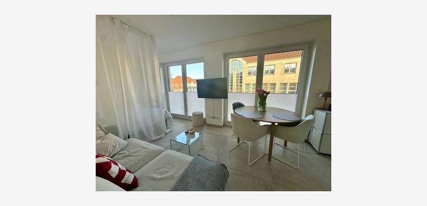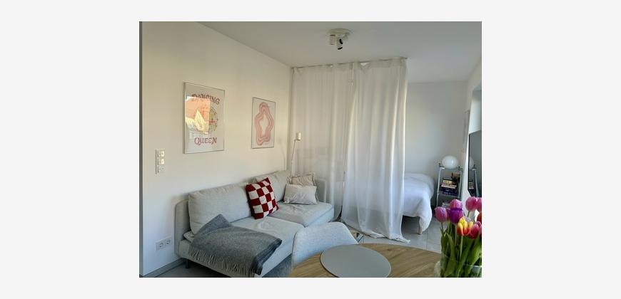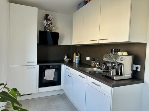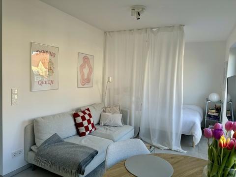 Mit einer Wohnfläche von etwa 33 m² verfügt die Wohnung über ein durchdacht geplantes und effizient genutztes Raumkonzept. Der offen gestaltete Wohn-/Essbereich wirkt dank großzügiger Fensterflächen hell und freundlich. Die hochwertige Einbauküche ist harmonisch in den Wohnraum integriert und fügt sich sowohl optisch als auch funktional in das moderne Gesamtkonzept ein.