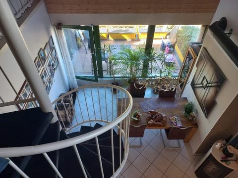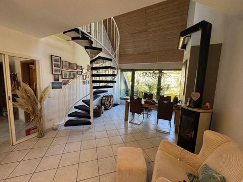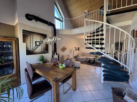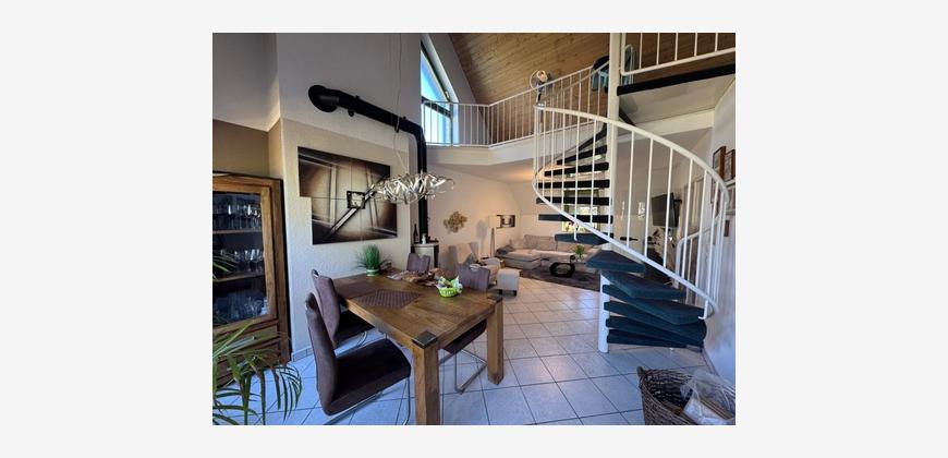 Ein besonderes Highlight der Wohnung ist die offene Galerie, die dem Wohnraum eine moderne und luftige Atmosphäre verleiht. Für zusätzlichen Komfort sorgt die Fußbodenheizung, während der Kamin insbesondere in den kälteren Monaten für eine behagliche Wohnqualität sorgt.
