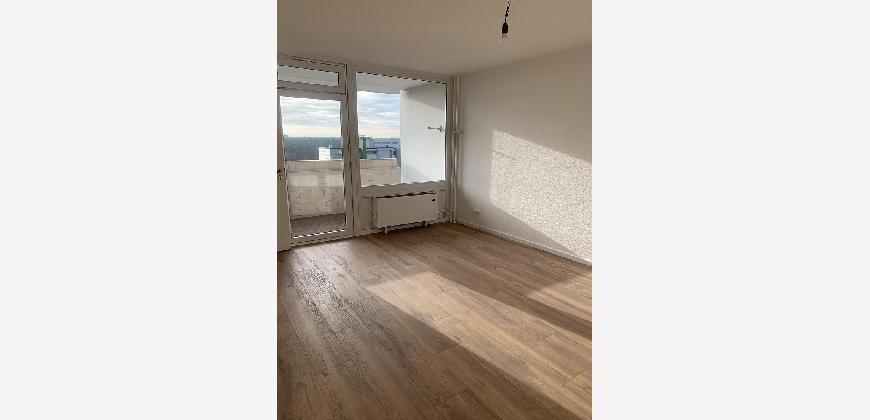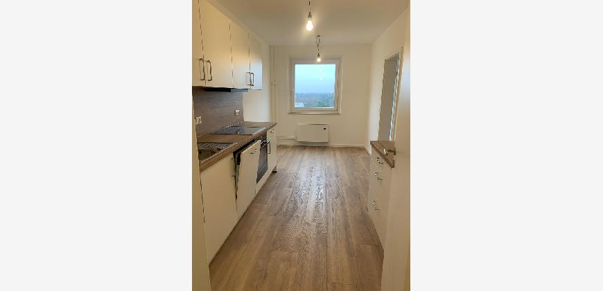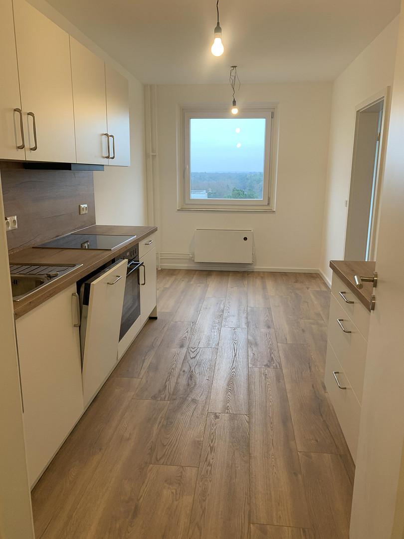 Dank der großen Fensterfronten im Wohnbereich ist die Wohnung sehr lichtdurchflutet. Die erhöhte Lage im 10. Stock garantiert zudem eine angenehme Privatsphäre und einen weiten Blick über die Umgebung. Abgerundet wird das Angebot durch gepflegte Details wie frisch lackierte Heizkörper und eine instandgesetzte Elektrik.