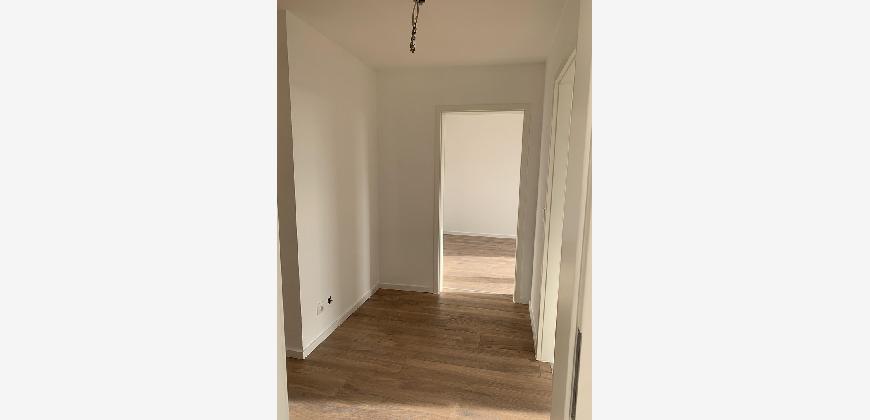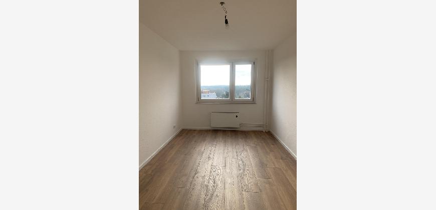 Die Wohnung wurde umfassend saniert und modernisiert, wobei Wert auf ein zeitloses und helles Design gelegt wurde. In allen Wohnräumen sowie im Flur wurde ein neuer, strapazierfähiger Boden in Eichen-Optik verlegt, der harmonisch mit den frisch tapezierten und weiß gestrichenen Wänden korrespondiert.