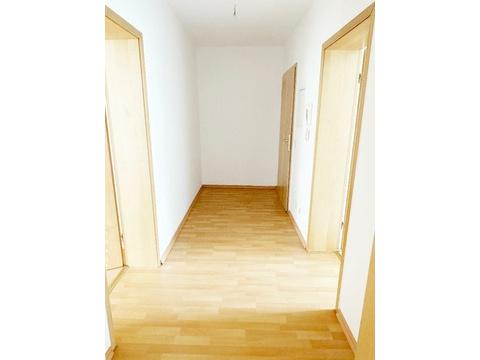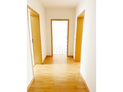 Man betritt die Wohnung über einen einladenden Flur mit hellem Laminatfußboden, der mit seinen 6,02 m² ausreichend Platz für eine Garderobe und zusätzlichen Stauraum bietet. Von hier aus sind alle Räume bequem erreichbar, was für eine angenehme und praktische Wohnstruktur sorgt.