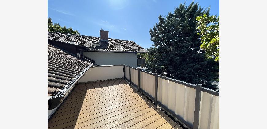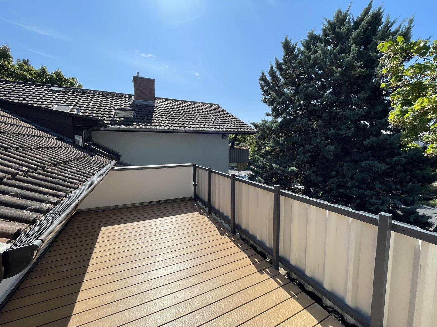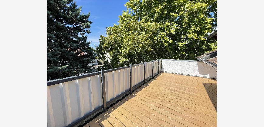 - Großer Sonnenbalkon umgeben von altem Baumbestand