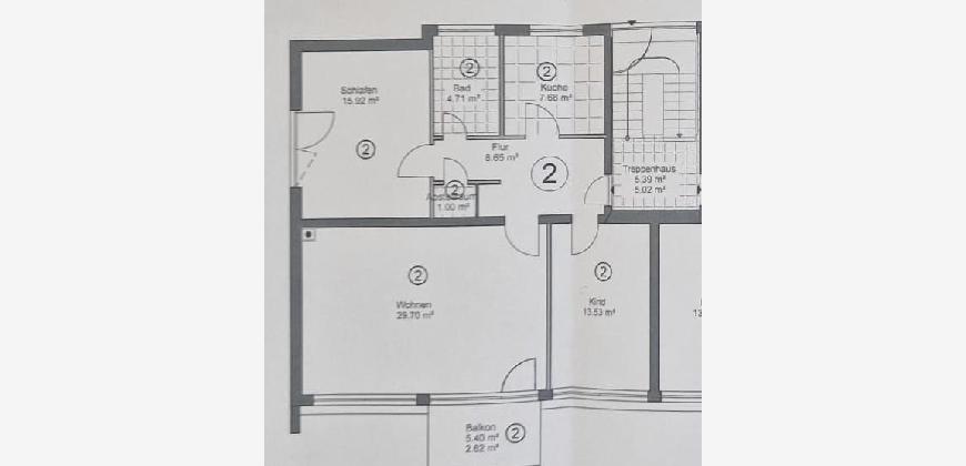 Zur Wohnung gehört ein eigener Kellerraum, der zusätzlichen Stauraum bietet. Ein Garagenstellplatz sorgt für bequemes und wettergeschütztes Parken. Das Haus verfügt außerdem über einen gemeinschaftlichen Waschraum. Die neue Einbauküche sowie der frisch sanierte Zustand der Wohnung runden das Angebot ab und machen die Immobilie zu einer sofort nutzbaren und hochwertigen Wohnlösung.