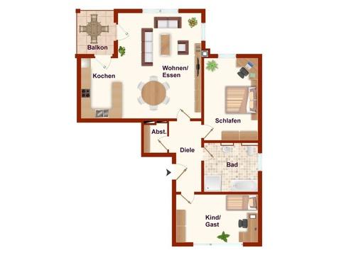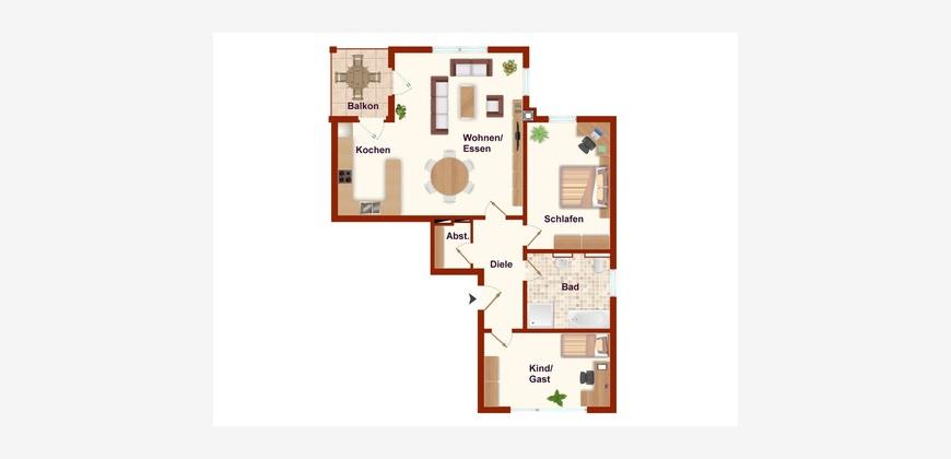 Die Wohnung besticht durch ihren tollen Grundriss mit Süd-Balkon und ist auch für 3 Personen geeignet. Auf Wunsch und nach Absprache steht die Wohnung schon kurzfristig zur Verfügung.