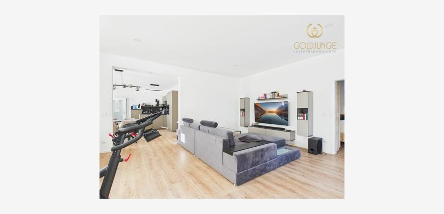 Die Wohnung verfügt über eine smarte Licht- und Wärmesteuerung, elektrische Rollläden, Fußbodenheizung sowie eine ebenerdige Dusche.