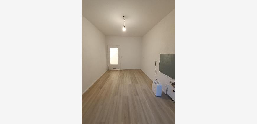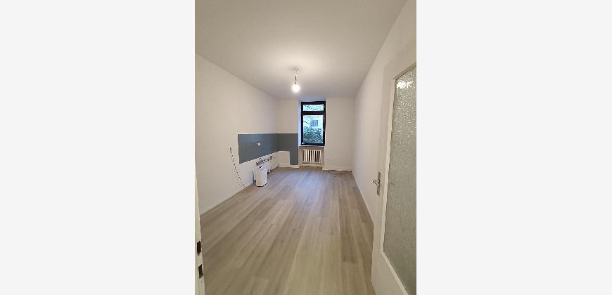 Die Wohnung wurde vollständig renoviert und befindet sich in einem sehr gepflegten Zustand. Der zentrale Flur ist gefliest, während die Wohnräume mit einem neuen Vinylboden in Holzoptik ausgestattet sind. Alle Wände wurden neu verputzt und frisch gestrichen. Das Badezimmer verfügt über eine Badewanne, ein Waschbecken und ein WC; die Armaturen wurden erneuert. Beheizt wird die Wohnung über eine Gasetagenheizung. Ein separater Kellerraum gehört ebenfalls zur Wohnung.