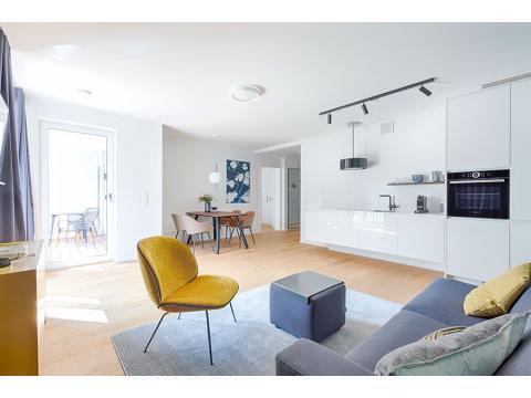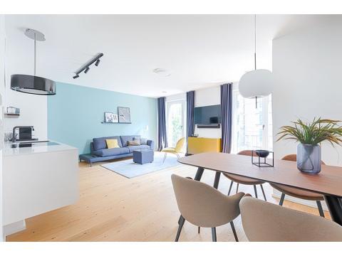 Die Wohnung ist vollständig eingerichtet und sofort bezugsfertig. Sie eignet sich ideal für Personen, die für einen befristeten Aufenthalt in München ein komfortables Zuhause suchen. Der helle Wohnbereich ist geschmackvoll gestaltet und lädt zum Entspannen ein. Die separate Schlafmöglichkeit sorgt für ausreichend Privatsphäre.