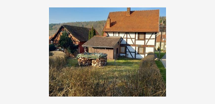 Das großzügige 900 m² große Grundstück umgibt das Fachwerk-Haus und eröffnet vielfältige Möglichkeiten für Gartenliebhaber oder als Rückzugsort im Grünen.