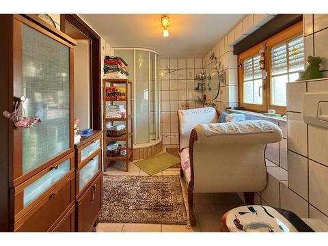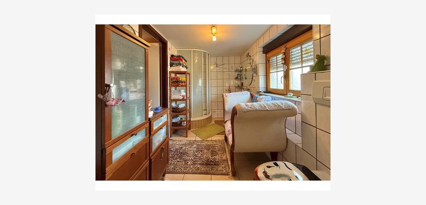 Das Haus ist voll unterkellert. Der Keller ist sowohl über die Küche als auch über einen separaten Außenzugang erreichbar. Neben zwei Kellerräumen – einer davon beheizt und tagesbelichtet – stehen hier ein Badezimmer sowie ein kleiner Saunabereich zur Verfügung, was den Nutzwert dieser Ebene deutlich erhöht.