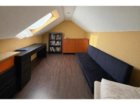 Im Dachgeschoss befinden sich ein weiteres Schlafzimmer, ein kleines Durchgangszimmer sowie ein zusätzliches Duschbad. Diese Etage eignet sich hervorragend als privater Bereich, für ältere Kinder oder als Kombination aus Schlaf- und Arbeitsbereich.