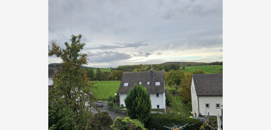 Es handelt sich um die Etagenwohnung im ersten Obergeschoss eines Drei-Parteien-Hauses im Königswinterer Ortsteil Stieldorferhohn.