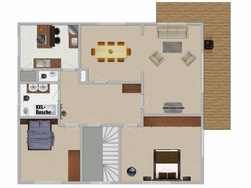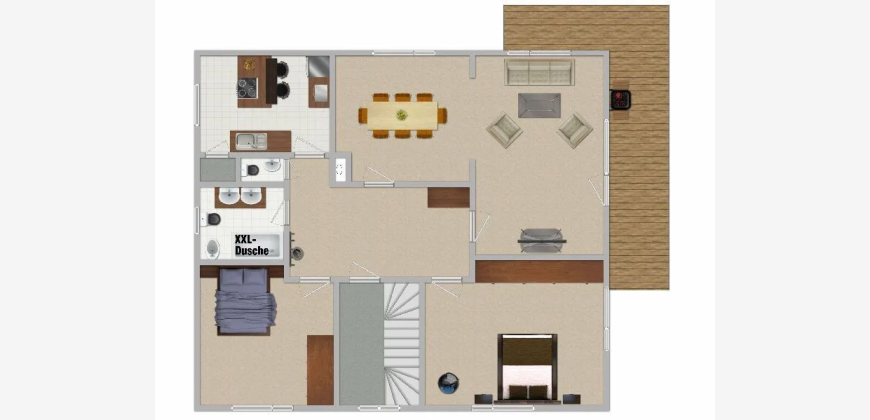 Nach Betreten der Wohnung befinden Sie sich in der großen Diele, welche viel Platz für Ihre Garderobe zur Verfügung stellt und Sie in sämtliche Räume der Wohnung führt: