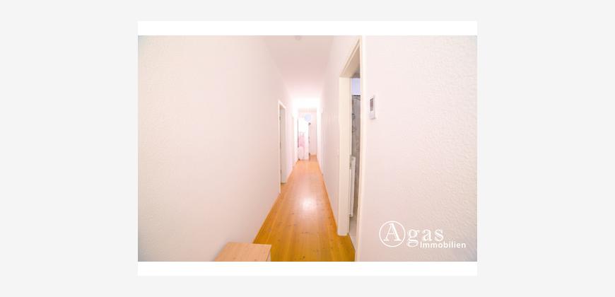 AusstattungDie Wohnung wird über einen langen, gut geschnittenen Flur betreten, der die einzelnen Räume miteinander verbindet und durch den original erhaltenen Dielenboden eine klassische Altbauatmosphäre vermittelt. Am Ende des Flurs befindet sich eine Nische, die sich ideal als zusätzlicher Stauraum, für ein Regal oder als Stauraum nutzen lässt.
