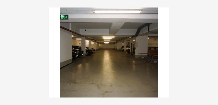 Ein Tiefgaragenstellplatz kann für 60 Euro monatlich angemietet werden. Einkaufsmöglichkeiten und eine Bushaltestelle befinden sich in unmittelbarer Nähe.