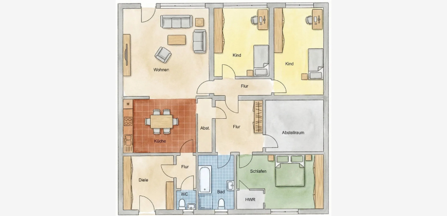 Raumwunder im Neusser Süden! Hier wohnen Sie im Haus der vielen Möglichkeiten! Das Wochenende, den Feierabend auf der sonnigen Terrasse mit der gesamten Familie genießen - in ruhiger Lage im Ort nur wenige Minuten von guter Infrastruktur entfernt - das zählt! Hier bietet sich die einmalige Chance zum Erwerb eines zeitgemäßen Zweifamilienhauses mit wirklich viel Platz zum fairen Preis-Leistungsverhältnis. Massiv gebauter 14x14 Meter breiter Reihenbungalow mit zwei separaten Wohneinheiten, der hervorragend auch von einer großen Familie oder zwei Familien bzw. auch von zwei Generationen genutzt werden kann. Im Erd- und Untergeschoss befinden sich jeweils ein großzügiger Wohn-und Essbereich sowie jeweils drei Schlafzimmer so dass genügend Platz für Kinder vorhanden ist. Ein weiteres Highlight des Hauses ist der über 40m² große Wintergarten im Erdgeschoss für Familienfeiern, Party, Hobby, Fitness uvm.