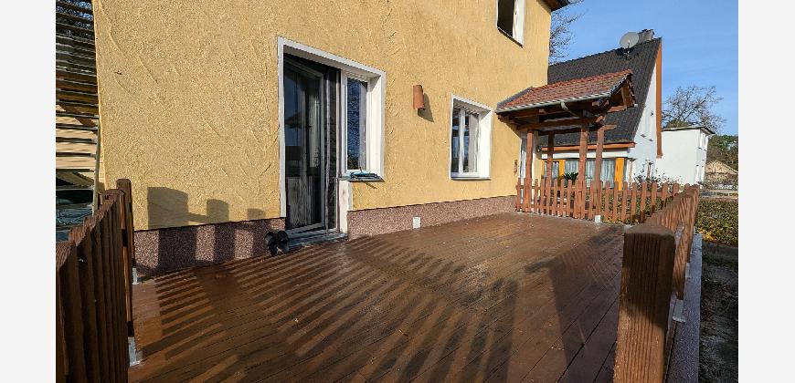 Grünheide bietet etwas ganz Besonderes: Schon nach 50 Metern laden die Ufer des wunderschönen Peetzsees zu erfrischenden Sommerbädern ein. Die unmittelbare Nähe zum See macht Ihre Freizeit zu etwas ganz Besonderem – Schwimmen, Picknick oder einfach die Seele baumeln lassen, an nur wenigen Gehminuten entfernt. Auf der anderen Seite des Hauses beginnt ein großflächiger, ruhiger Waldbereich. Nach einem anstrengenden Arbeitstag laden ausgedehnte Spaziergänge unter alten Bäumen zu innerer Ruhe und Entspannung ein. Vogelgesang statt Straßenlärm, frische Waldluft statt Großstadtgestöber.