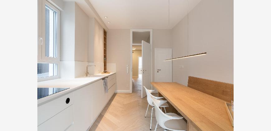 Die Wohnung wurde im Zuge einer umfassenden Kernsanierung hochwertig modernisiert. Zur Ausstattung zählen unter anderem Fußbodenheizung, Videosprechanlage, elektronische Schließanlage per App oder Chipkarte sowie eine bereits vorbereitete digitale Infrastruktur mit Internet-, Netzwerk- und WLAN-Versorgung in allen Räumen.