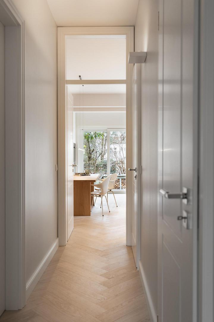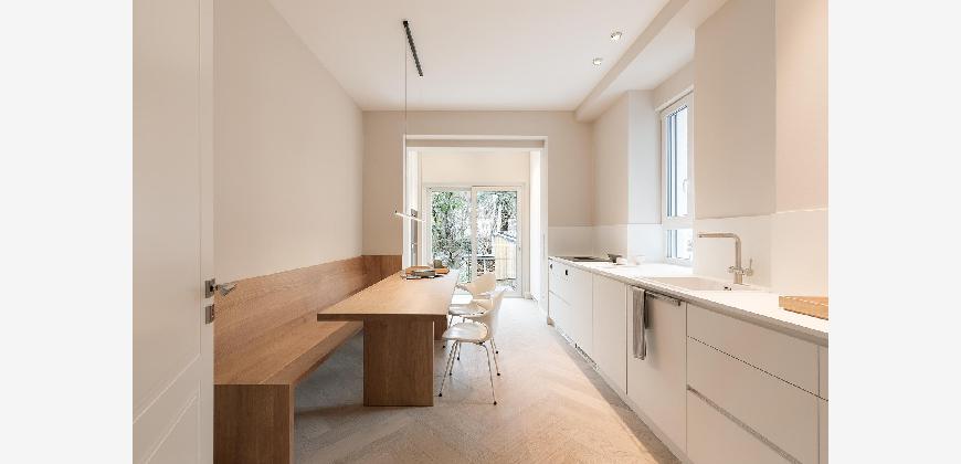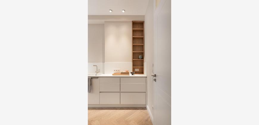 Besonders hervorzuheben sind die teilmöblierte Übergabe, diverse Einbaumöbel, das vollständig integrierte Lichtkonzept sowie die hochwertige Einbauküche mit Weinkühlschrank, Kühlschrank und Spülmaschine.