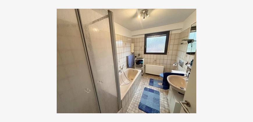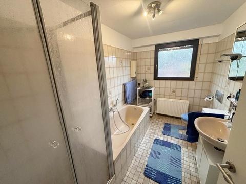 - Badezimmer mit Badewanne, Dusche, WC und Waschtisch