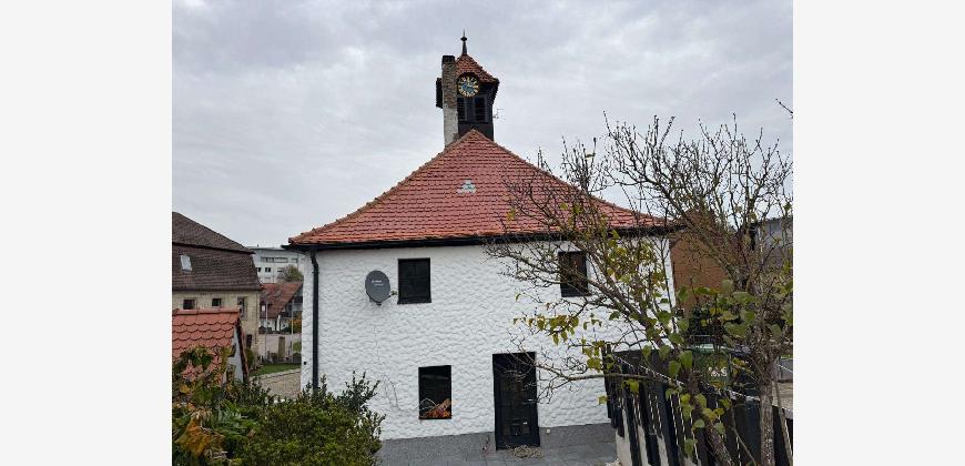 Dieses Einfamilienhaus aus dem Baujahr 1846 steht in einer ruhigen, wenig befahrenen Nebenstraße im Erlanger Ortsteil Vestenbergsrgreuth. Das Gebäude ist ein Baudenkmal und überzeugt durch seinen historischen Charakter. Die Fassade ist traditionell verputzt. Das Walmdach zeichnet sich durch ein besonderes architektonisches Detail aus: mittig sitzt ein Fachwerk-Dachreiter, ausgestattet mit zwei Turmuhren, die dem Haus ein unverwechselbares Erscheinungsbild verleihen.
