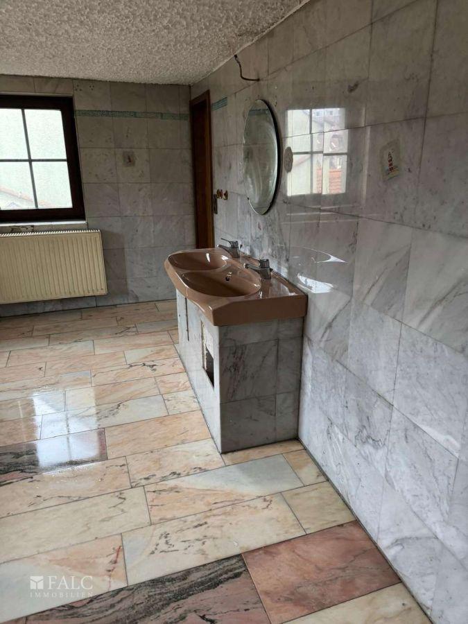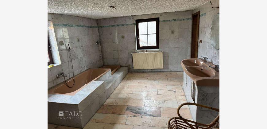 Großes, helles Badezimmer mit Badewanne, Dusche, Fenster
