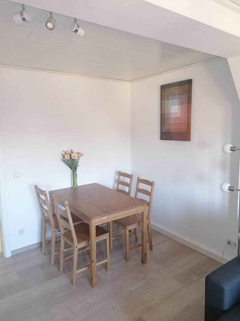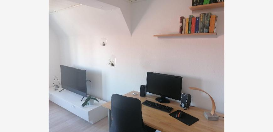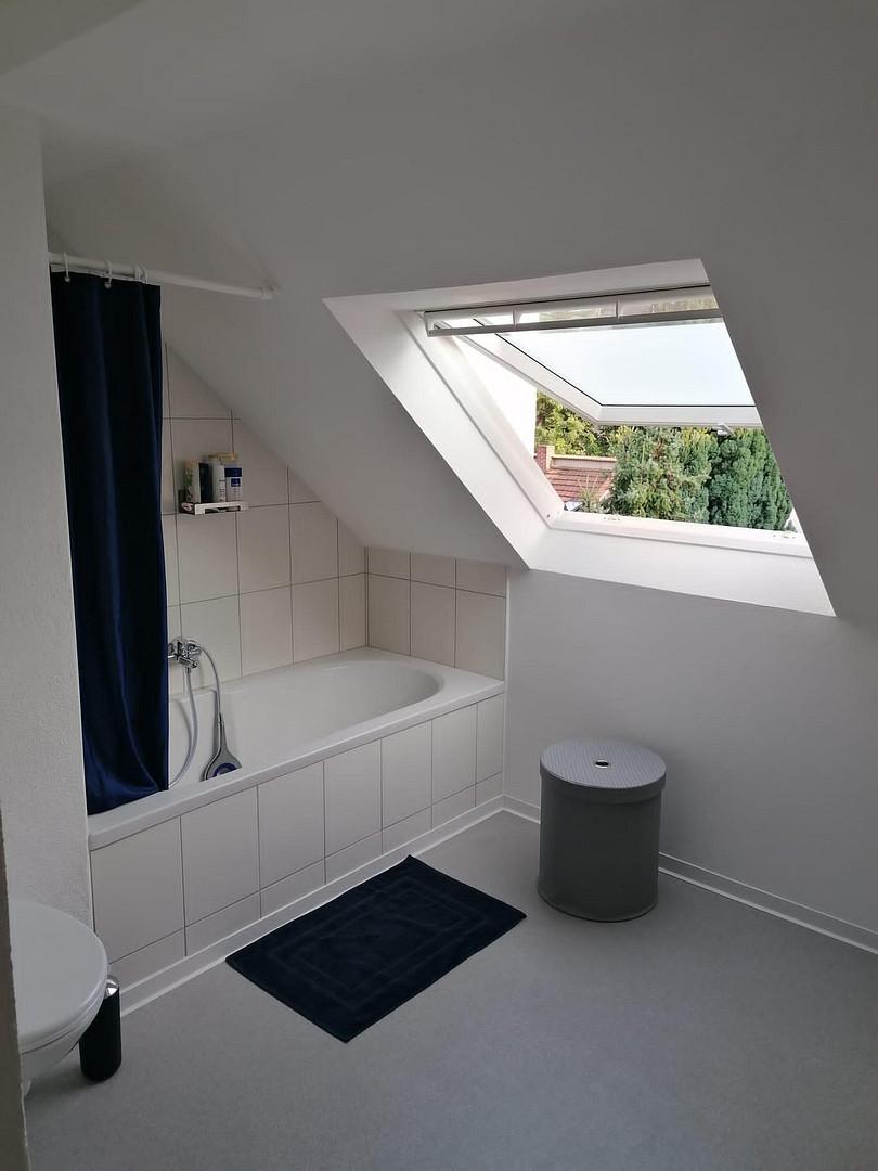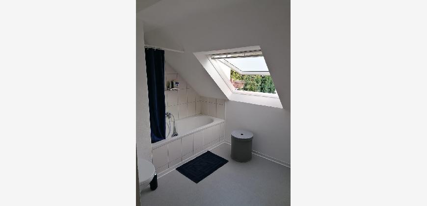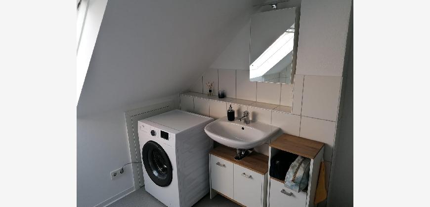 Die Wohnung wurde 2017 kernsaniert und verfügt über moderne Sanitär- und Elektroanschlüsse. Im Flur und Bad sind LED Einbaulampen in den weißen Holzdecken