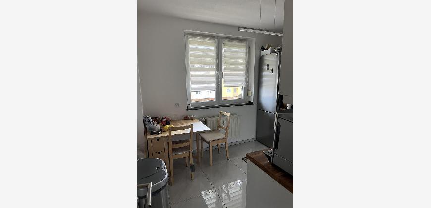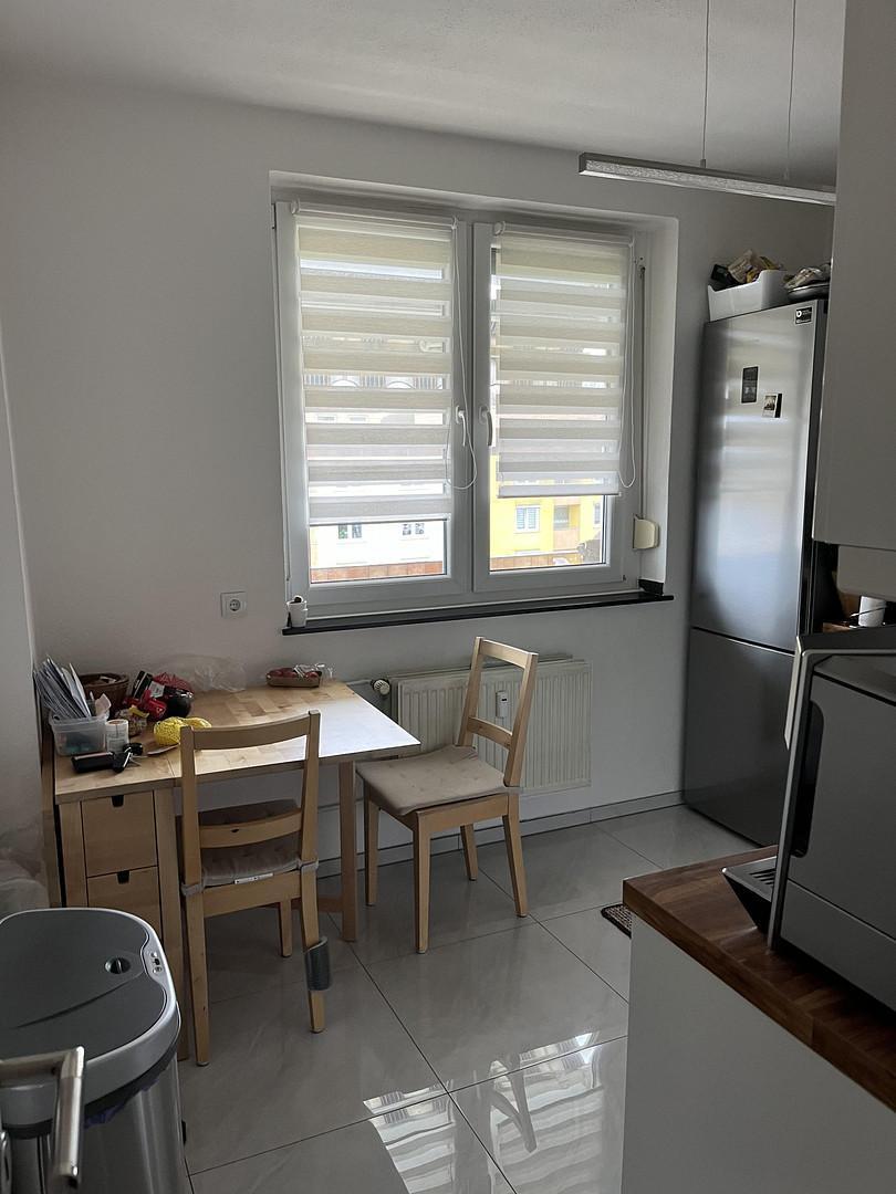 Die Hausfassade ist gedämmt. Doppelverglaste Kunstofffenster mit Rollläden, modern geflieste Küche, Südbalkon mit Markise, Eiche-Grau Laminatfussböden, Gaszentralheizung. Die Wohnung ist momentan an nette Familie sied über 8 Jahren vermietet jedoch zum 01.05.2026 wird die Wohnung frei. Hunde im Haus sind leider nicht erlaubt.
