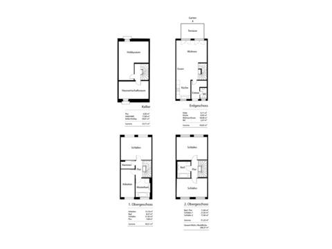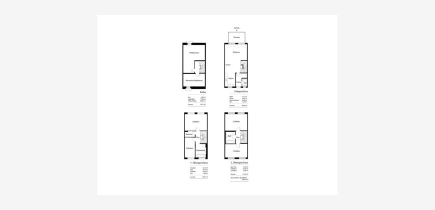 Im 1. Obergeschoss befinden sich ein geräumiges Hauptschlafzimmer mit ca. 20 m², ein funktionales Arbeitszimmer, eine praktische Kammer für zusätzlichen Stauraum sowie ein lichtdurchflutetes Masterbad. Das 2. Obergeschoss umfasst zwei gemütliche Schlafzimmer und ein zentral gelegenes Wannenbad mit zwei Waschbecken für zusätzlichen Komfort.