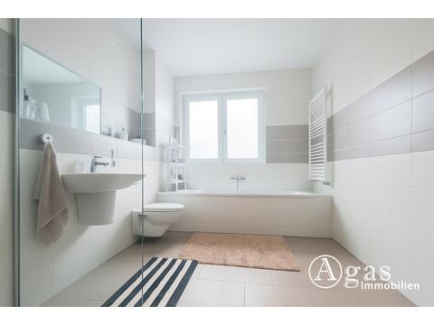 Lassen Sie sich von hellen, komfortabel geschnittenen Wohnräumen beeindrucken, welche durch große Fenster natürlich von Tageslicht durchflutet werden. Die exklusive Einbauküche im Erdgeschoss lässt keine Wünsche offen und eignet sich perfekt für kulinarische Freuden mit Freunden oder der Familie. Das Haus verfügt über insgesamt fünf Zimmer, darunter drei großzügige Schlafzimmer, ein Arbeitszimmer, das zusätzlich als Schlaf- oder Gästezimmer genutzt werden kann und zwei modern ausgestattete Badezimmer, die den Wohnkomfort zusätzlich betonen.