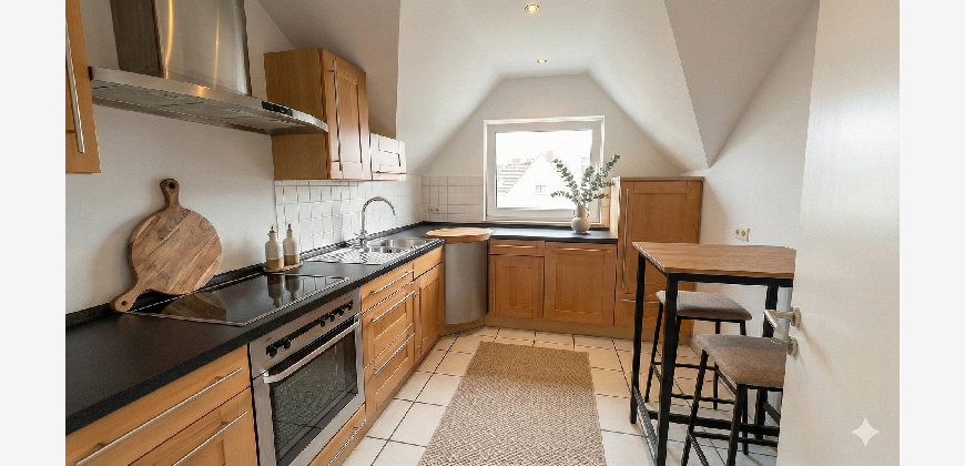 - Maisonette-Aufteilung: Wohngefühl über 2 Etagen (2. OG + Dachstudio).