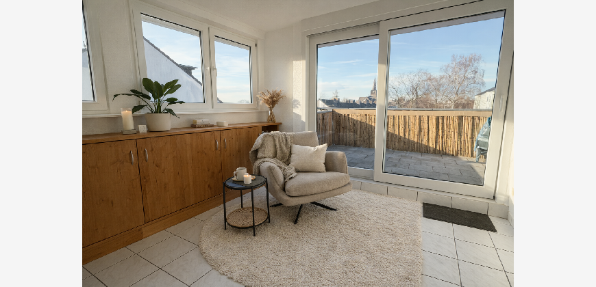 Die Wohnung liegt in einer der beliebtesten Lagen von Köln-Porz-Urbach: In einer Sackgasse ohne Durchgangsverkehr, aber dennoch zentral angebunden.