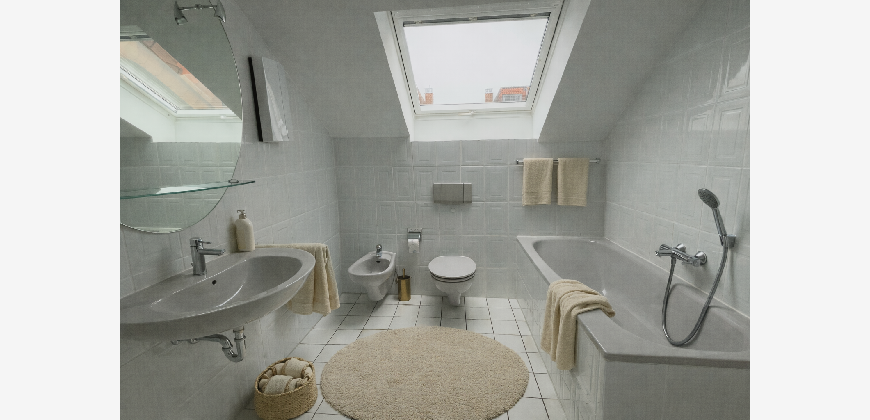 - Bäder: 1x Tageslichtbad mit Wanne, Dusche & Bidet + 1x separates Gäste-WC.