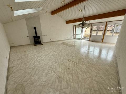 Das im Jahre 1908 erbaute Hauptgebäude bietet Ihnen mit einer Wohnfläche von ca. 190 qm reichlich Platz für die ganze Familie. Sie werden die Größe auf den ersten Blick gar nicht erkennen, denn viel Platz versteckt sich hinter der Straßenfassade: 2002 wurde aus der früheren Dachterrasse über den Garagen ein Wintergarten und ein großzügiges Wohnzimmer mit Kaminofen. Das ist in unseren Augen ein absolutes Highlight. Das noch nicht ausgebaute Dachgeschoss eröffnet Ihnen die Möglichkeit aus dem Wohnhaus ein Generationenhaus zu machen. Die Betonung liegt auf Machen, denn angepackt werden muss. Worüber wir auch schreiben sollten, das ist die Lagerhalle, denn die hat wirklich das Potenzial für eine große Werkstatt, ein platzeinnehmendes Hobby oder für das, was uns gerade nicht durch den Kopf geht, in Ihrem aber schon verankert ist.