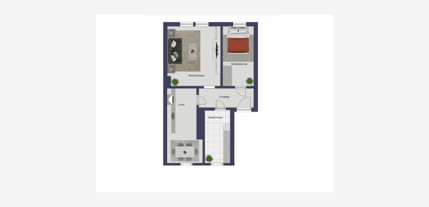 Diese schöne 2-Zimmer-Wohnung im zweiten Obergeschoss eines Mehrfamilienhauses bietet Singles oder Paaren die perfekte Möglichkeit sich auszuleben und einen neuen Lebensabschnitt zu beginnen. Die Raumaufteilung auf ca. 52 m² Wohnfläche sorgt für eine ausgeglichene Wohnatmosphäre und lässt der kreativen Gestaltung freien Lauf.