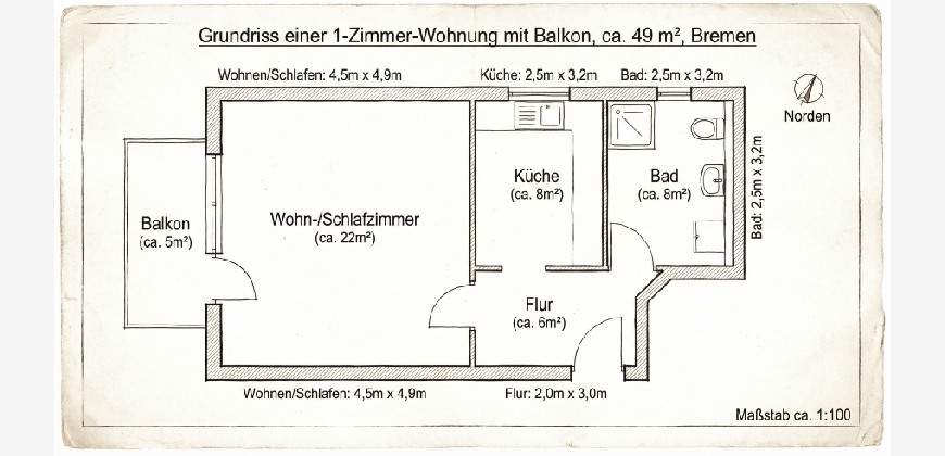 Wohnung - Wohnung (Etagenwohnung) provisionsfrei mieten in 28195 Bremen, - 49 m2